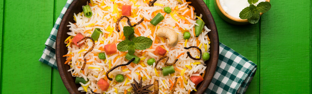 Vegetables cooked with basmati rice in a wholesome combination with yoghurt, fresh mint & spices, served with raita.